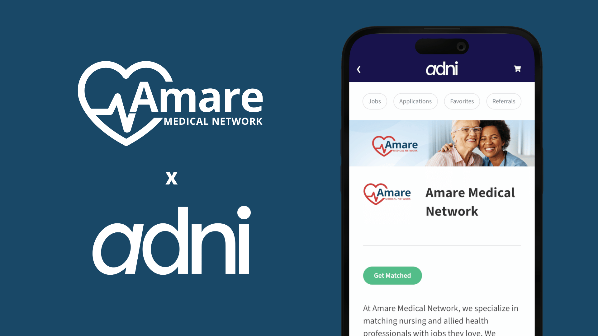 Together, Amare and Adni are setting a new standard for healthcare staffing, making it easier than ever for clinicians to find meaningful opportunities while feeling supported, valued, and rewarded.